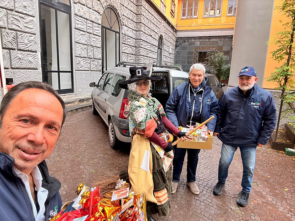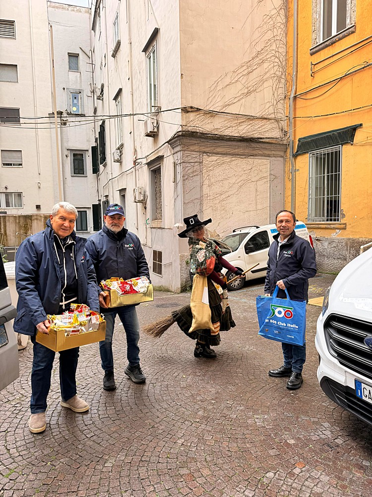 Lunedì 5 con Antonello Martina (fiduciario di Napoli Città), Domenico Filippella e la socia di Caserta Chiara Santoro, simpaticissima Befana, ci muoviamo alla volta della sede della Fondazione, uno splendido palazzo storico alla “Riviera di Chiaia”, parallela del lungomare; lì veniamo accolti dall’amabile direttrice Daniela Genovese con tutto il suo staff che ci mette a nostro agio scattando con noi alcune foto e chiedendoci informazioni. Lì spunta la frase fatidica: “Conservo anche io la 500 di mio nonno”. Ci guardiamo per un attimo ammutoliti e poi parte la domanda: “E come mai ancora non è dei nostri?”. Da lì scambio di numeri e promessa di rimettere la vettura in sesto al più presto, con il nostro aiuto per CRS e quant’altro, per poterla avere in uno dei nostri incontri e la promessa che, organizzando un nuovo “tour” con regali per i bimbi, si possa portarli noi direttamente in corsia. Oltre un’ora di una splendida chiacchierata, mettendo sul tavolo ipotesi di progetti futuri di varie collaborazioni. Anche stavolta si torna a casa con il sacco pieno, svuotato sì dei regali, ma riempito della conoscenza, dei rapporti, della possibilità di costruire sempre qualcosa di buono e di diverso e dare un senso sempre più alto alla nostra passione.