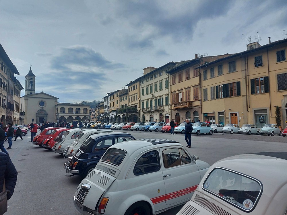 Dopo il freddo e la neve che hanno confermato il proverbio “marzo pazzerello”, ci voleva una giornata come quella di domenica 29 marzo per riportare in piazza il sole primaverile e non solo, in concomitanza con il cambio d’ora. Una giornata ancor più memorabile perché a Figline Valdarno e territorio circostante i cittadini sono stati svegliati dal rombo delle 500 provenienti da ogni parte d’Italia, specialmente dalla Toscana, per vivere intensamente l’edizione numero 23 del Raduno del Valdarno in Fiat 500 e derivate organizzato da Giovanni Nocentini e Susanna Poggesi del Coordinamento di Valdarno-Firenze Sud. Alle ore 8.30 la storica Piazza Marsilio Ficino era già gremita, almeno da parte dei mattinieri che si sono subito incuriositi e avvicinati alle primissime vetture messe in esposizione. Intorno alle ore 11 i dati parlavano chiaro: gli scritti alla manifestazione erano oltre 100.