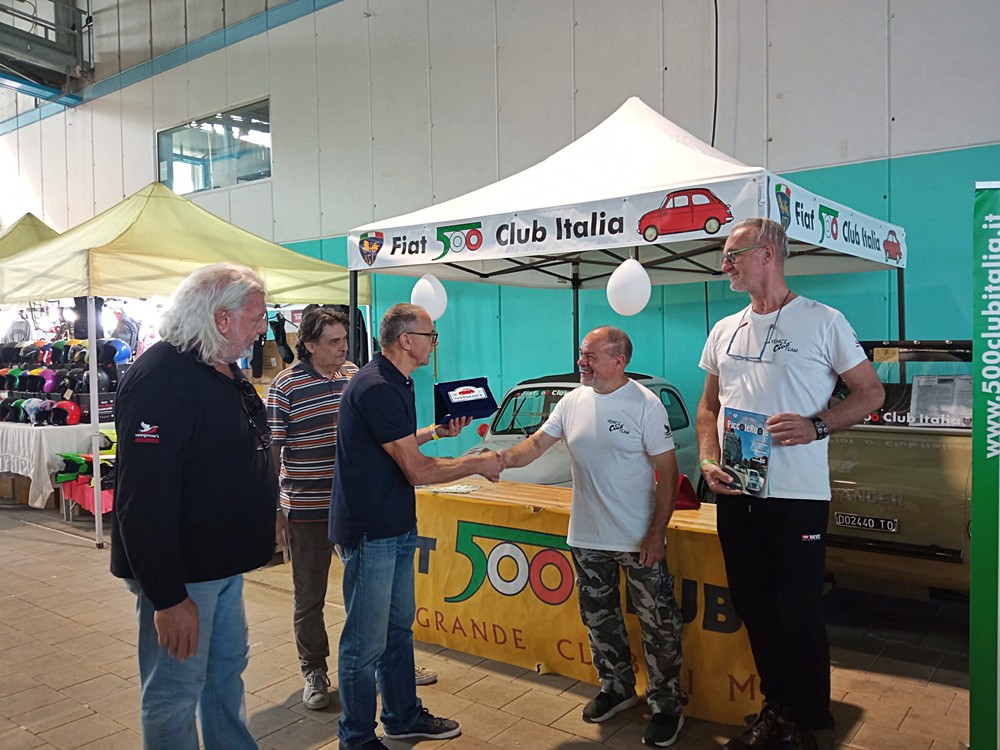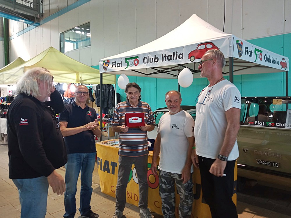 Un momento particolarmente piacevole è stato il tesseramento di un nuovo socio proveniente da Hong Kong, proprietario di una Fiat 500 L del 1971 con la curiosa targa “5cento”.