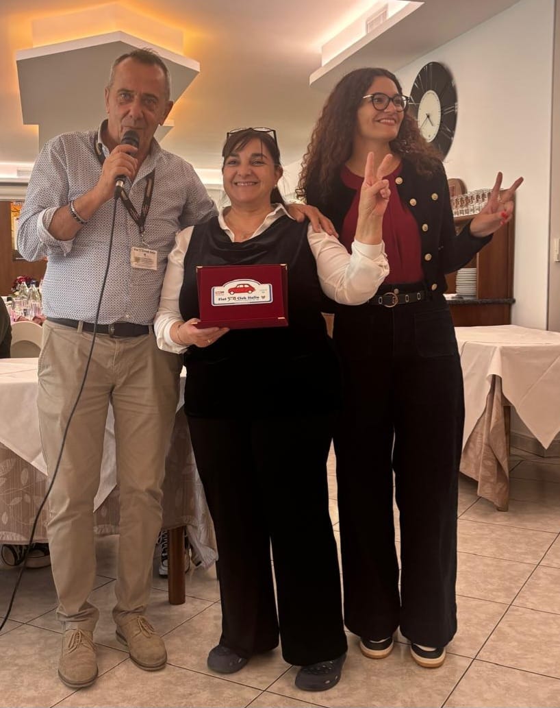 Al pranzo hanno partecipato gran parte dei cinquecentisti, che si sono ritenuti soddisfatti dall’accoglienza e dalla qualità del buon cibo predisposta dallo staff del ristorante; gli organizzatori hanno voluto ringraziare la proprietaria, regalandole una targhetta ricordo del meeting 500.