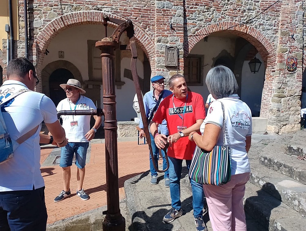 Dopo ci siamo mossi alla volta del borgo di Civitella in Val di Chiana, a circa 20 km da Arezzo, e lì abbiamo consumato il pranzo a buffet (quindi non servito non servito a tavola): certamente una cosa inconsueta per il format dei nostri raduni, ma è stato gradito, in quanto dopo in ora eravamo già alla distribuzione dei premi ed alle 15, per chi lo desiderava, c’era già modo di riprendere la via di casa. Cosa che però non è accaduta, in quanto i soci si sono trattenuti perché avevano anche la possibilità di visitare la Pinacoteca Comunale, la Biennale di Pittura Contemporanea ed il piccolo Museo della II Guerra Mondiale.