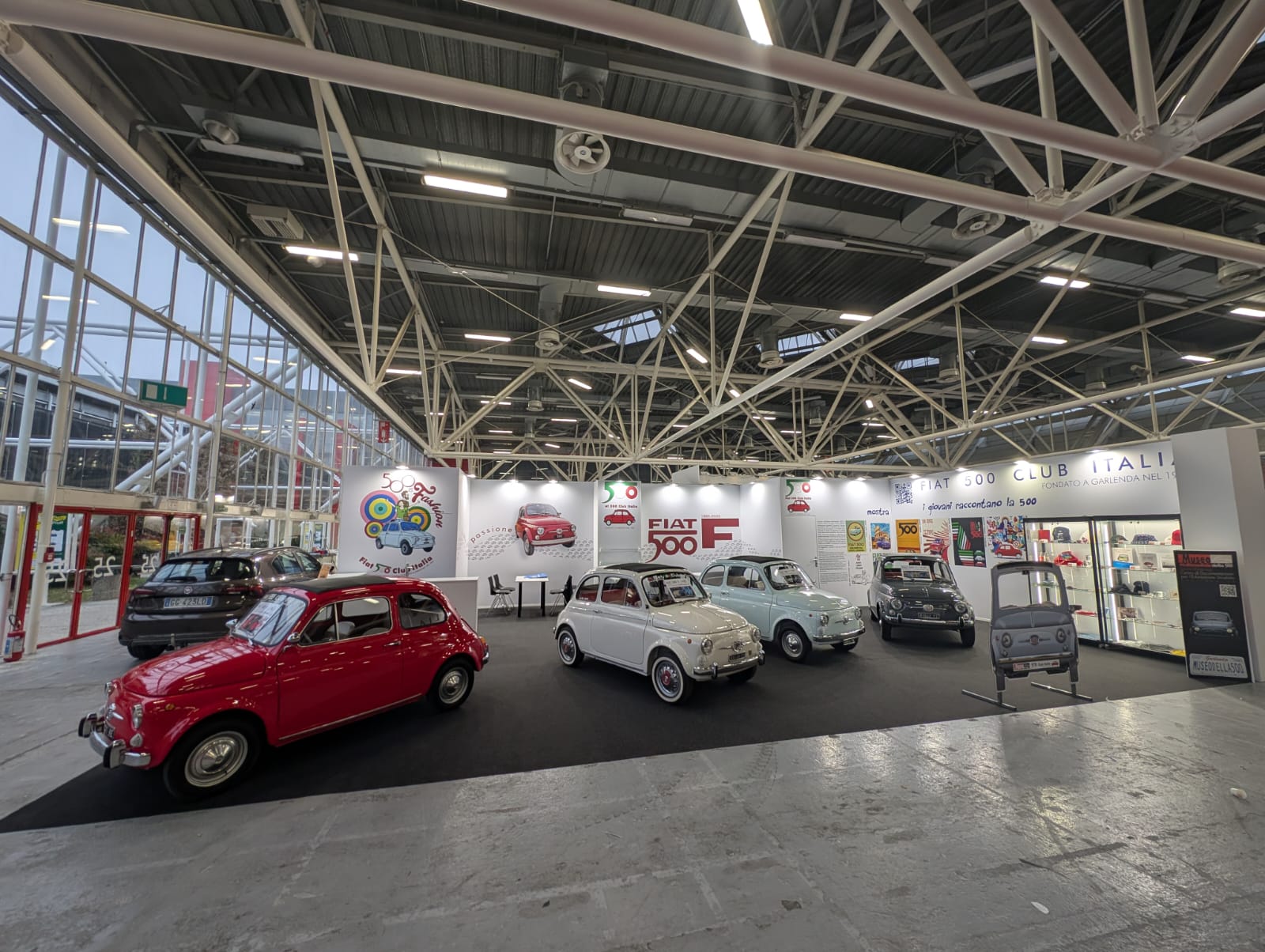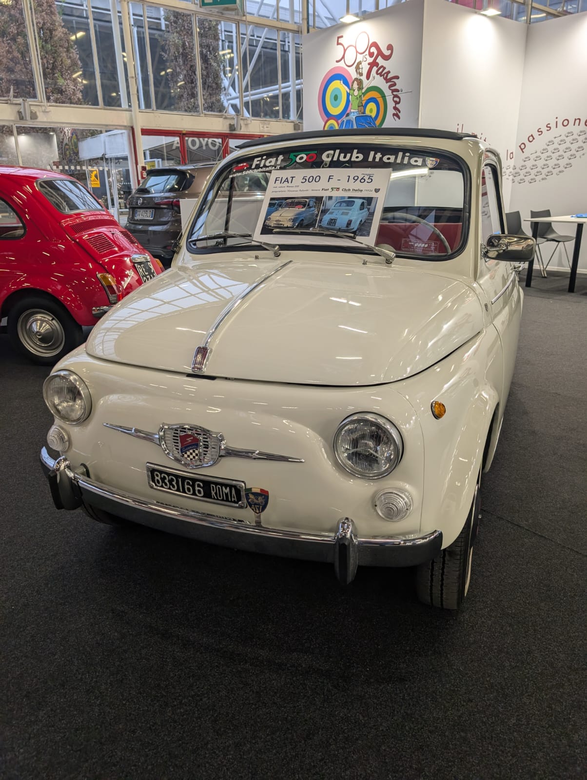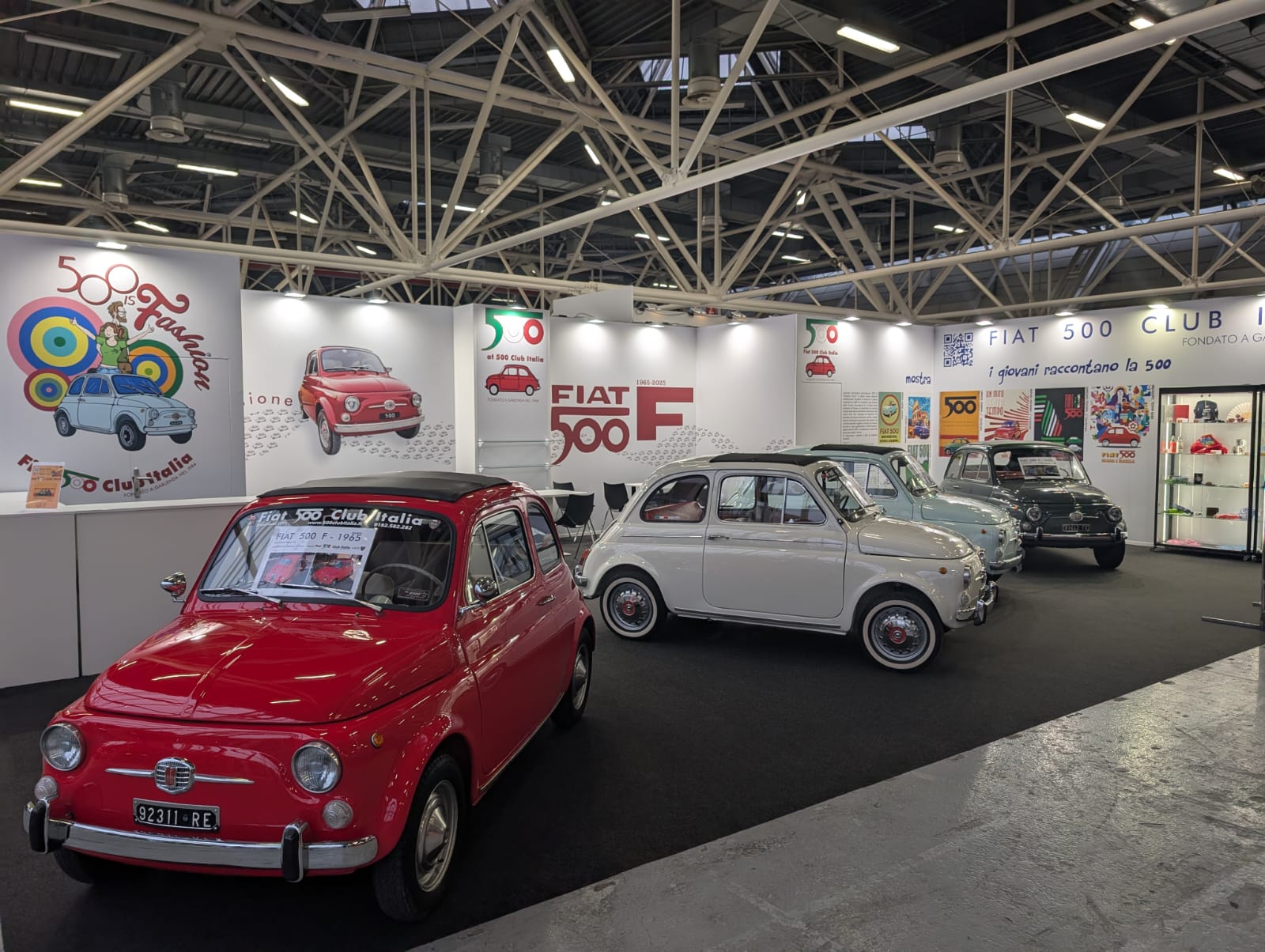 Il Fiat 500 Club Italia conferma anche quest’anno la sua presenza ad Auto Moto d’Epoca a Bologna e lo fa con un ampio stand dedicato alla 500 F, che festeggia il suo sessantesimo compleanno. Le vetture in esposizione appartengono ai soci Roberto dall’Asta, Vincenzo Palombi, Roberto Pini e Massimo Zucchelli.
