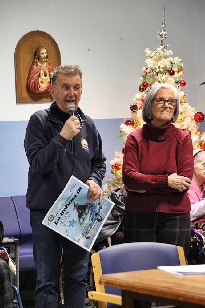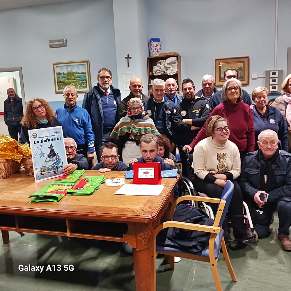 3 gennaio 2026. Su invito del presidente della Sottosezione Toscana Viareggio dell’UNITALSI (Unione Nazionale Italia Trasporto Ammalati a Lourdes e Santuari Internazionali), Antonio Altamura con la sig.ra Barbara, ci siamo presentati con i nostri cinquini al Palasport di Camaiore. Qui ci aspettavano giovani persone disabili, con occhi ammirati e curiosi per le nostre macchinine colorate. Abbiamo consegnato al Sindaco, al Comandante dei Vigili Urbani e alle altre autorità targhe e gagliardetti del nostro Club. Pronti per il corteo, la Befana con il sig. Leone in testa e un ospite per alcune 500, siamo partiti per la RSA Santa Caterina di Pieve di Camaiore: qui siamo stati accolti con piacere dai 32 ospiti. Momento Befana per tutti, saluti calorosi e poi ripartenza, stavolta verso Viareggio e l’RSA Sacro Cuore, che ha 100 ospiti. Anche qui momento di festa, occhi lucidi e felici. Una giornata toccante, che si è conclusa con una pizza offerta dal presidente Altamura. Ringraziamo i Sindaci di Camaiore e Viareggio, le loro Amministrazioni, i Vigili Urbani e tutto il personale e i responsabili delle strutture visitate (anche per loro ci sono stati gli omaggi del Club). Grazie all’UNITALSI, ai nostri fiduciari e soci presenti (Coordinamenti di Lucca, Versilia Massa Carrara, Pistoia, Pisa e naturalmente Empoli).