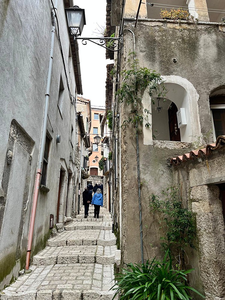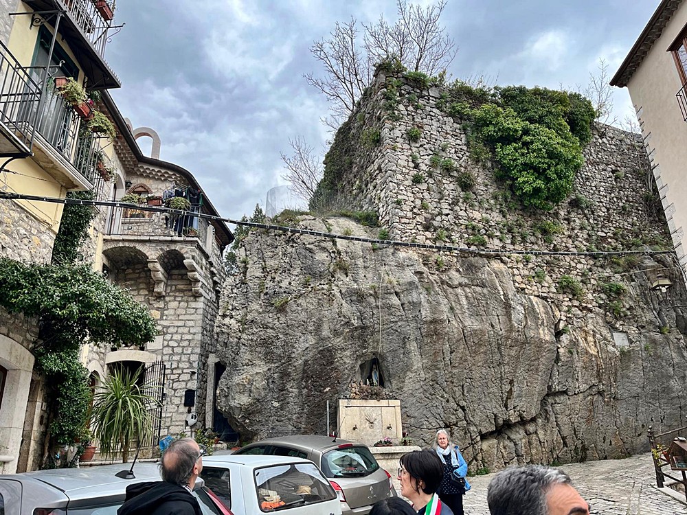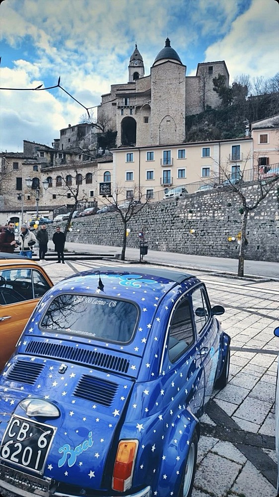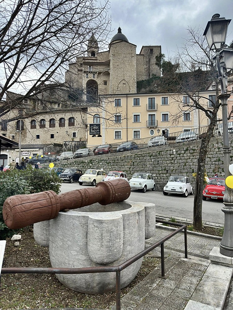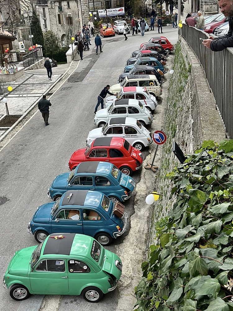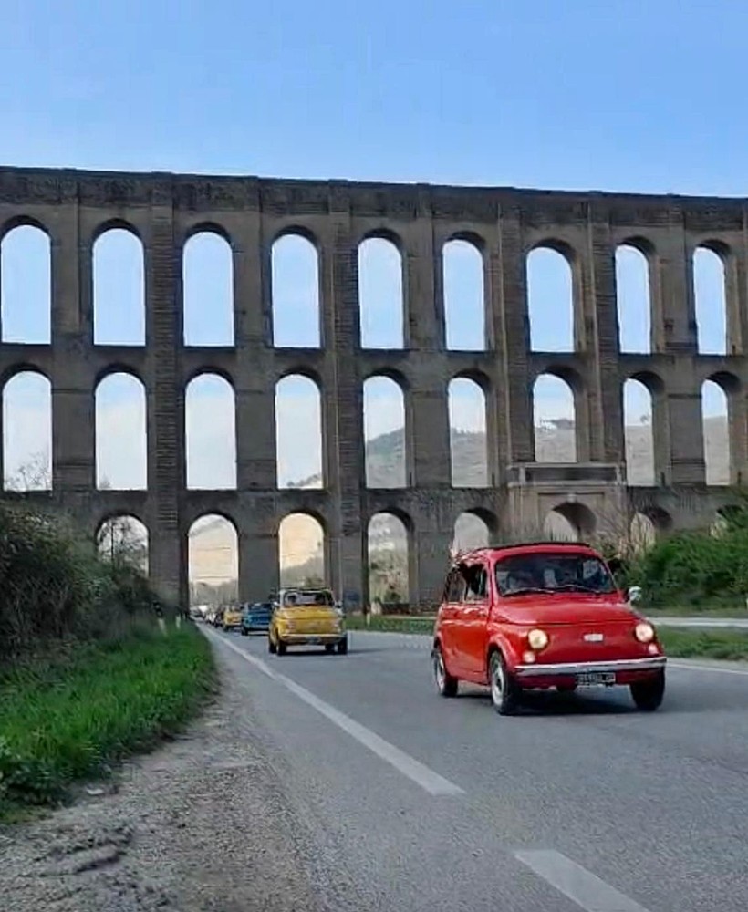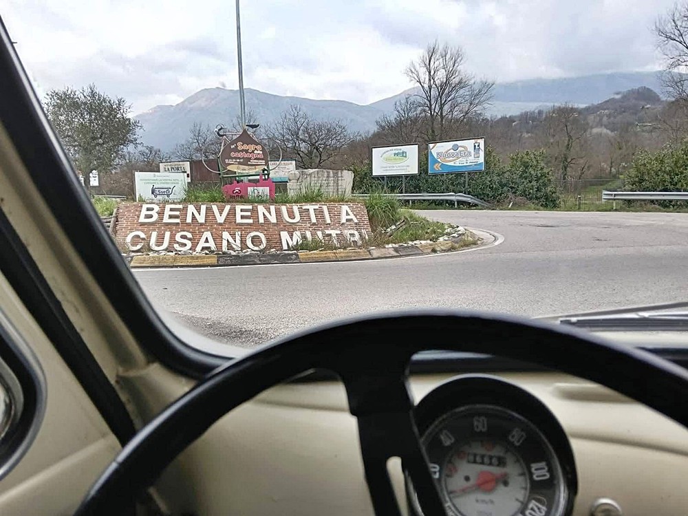 Per noi da Napoli, dopo un po’ di autostrade, si entra nel bellissimo paesaggio delle nostre campagne attraverso l’Acquedotto Carolino, splendore architettonico posto quasi come “porta” per l’ingresso nel vero e proprio slow drive fatto di campi, di colline, delle varie coltivazioni e ti viene voglia di aprire il tettuccio, complice il bel tempo, per inebriarti dei profumi della terra delle nostre tradizioni e con quei profumi arrivare alla meta entrando nella Storia. Cusano Mutri è un antichissimo borgo medioevale che conserva intatte le sue case di pietra del centro storico fatto di viuzze (fortunatamente impraticabili alla auto) e di scale, la splendida torre dell’antica città fortificata, purtroppo l’unica rimasta indenne, le antiche porte cittadine e gli angoli nascosti, la splendida chiesa dei Santi Pietro e Paolo con la sua pala d’altare che da sola è un capolavoro per cui vale la pena di venire fin qui. Il tutto illustrato passo passo (o meglio, gradino dopo gradino) dalle due guide locali. Quando si sta così bene, però, purtroppo il tempo vola ed è tiranno, allora tutti in macchina (oltre 50: tante, per un borgo così piccolo) e si parte per il giro per le contrade fino al territorio di Pietraroja, altro posto da visitare, anche se oggi non c’è tempo per il Museo Paleontologico con i resti di “Ciro”, il cucciolo di dinosauro meglio conservato d’Europa. Nel territorio di Pietraroja una bellissima azienda casearia a conduzione familiare ci attende con un gustoso aperitivo e fioccano i primo brindisi, poi tutti a comprare qualche leccornia da portare a casa: caciotta al tartufo locale, caciocavallo e tantissimi tipi di formaggi. Poi ancora in macchina per arrivar alla parte conclusiva di questa splendida giornata: pranzo con specialità locali, un po’ di musica e balli, distribuzione di omaggi, il ritiro della welcome bag sempre gradita e poi, purtroppo, “è subito sera”. Baci, abbracci, saluti e si ritorna a casa di nuovo carichi, passando di nuovo la splendida porta dell’Acquedotto Carolino, illuminato di sera nella bella foto di un socio di Caserta che, dopo una giornata di relax “lontani dal quotidiano” ci riporta alla realtà; domani si ricomincia, in attesa del prossimo raduno, per tirare di nuovo la levetta, risentire il celestiale borbottìo e partire per una nuova avventura.