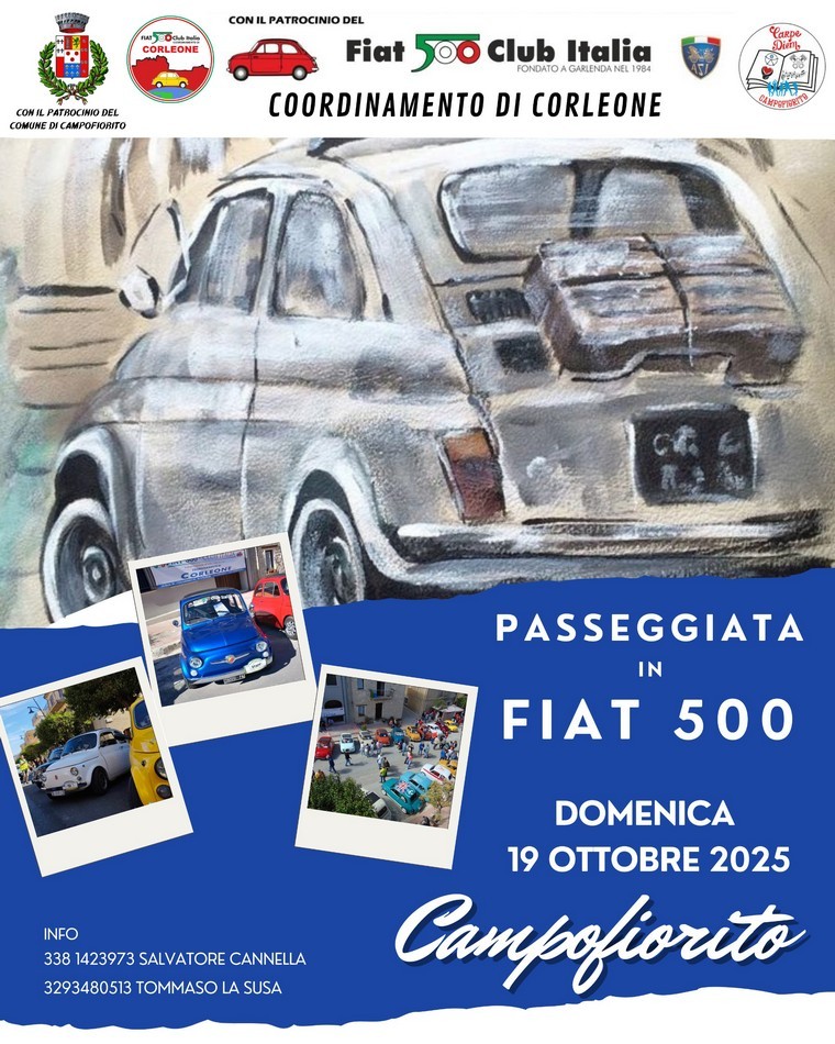 Evento Fiat 500 organizzato dal Coordinamento Corleone – Fiduciario: Tommaso La Susa con il patrocinio del Fiat 500 Club Italia.