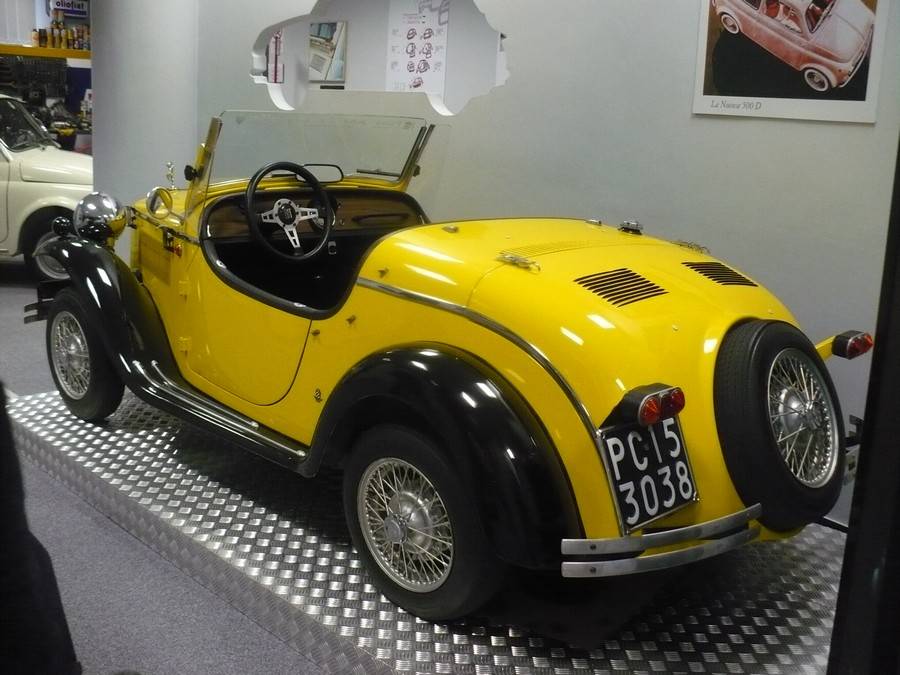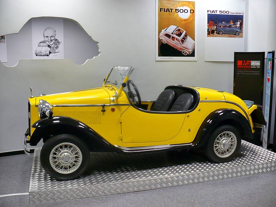 Questa spider a due posti era costruita su telaio originale Fiat 500 F. La struttura portante era rinforzata sui longheroni e inscatolata per assicurare la massima compattezza a tutta la vettura. Volante con possibilità di abbassamento ottenuto a mezzo di giunto cardanico applicato all’uscita della scatola di sterzo. Cruscotto di design estremamente lineare. Sedili anatomici in morbida finta pelle. La vettura è dotata di cappottina in tela impermeabile con telaio in tubolare che una volta ripiegato trova posto dietro agli schienali.