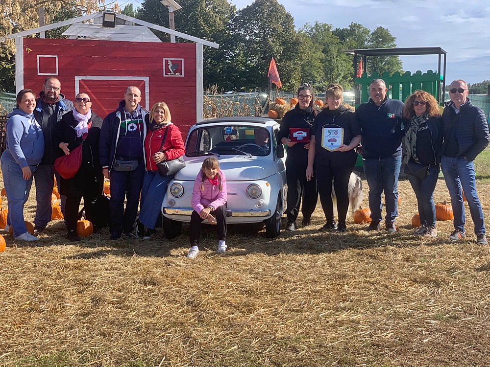 Dopo aver raggruppato tutte le 500 al centro della scenografia, i partecipanti hanno espletato le operazioni d’iscrizione ricevendo un bellissimo omaggio in ricordo della giornata per poi consumare un graditissimo aperitivo con prodotti fatti in casa. La pioggia incessante ha impedito di sfruttare gli spazzi all’aperto allestiti con giochi per grandi e piccoli, il labirinto di mais, la pigiatura dell’uva e la fattoria didattica, ma ha favorito il “divertimento” verbale all’interno di una comodissima struttura in legno riscaldata. Verso le ore 12,30 abbiamo incominciato a consumare un ricco e apprezzatissimo pranzo con la zucca da protagonista, innaffiato da buon vino. Verso la metà del pomeriggio, il meteo ha regalato un attimo di tregua che ha consentito di effettuare la foto di gruppo e la premiazione delle vetture più rappresentative; tutti i partecipanti sono stati omaggiati con una zucca.