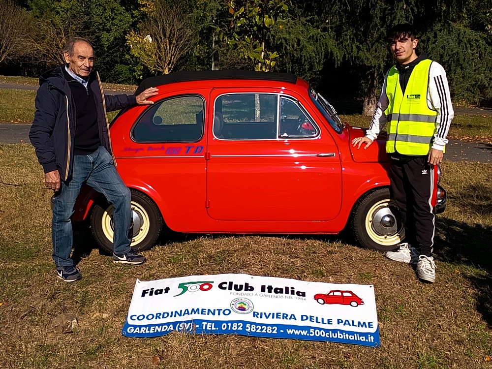 Oggi quella passione è stata tramandata da nonno a nipote ed è proprio in questa occasione che Luca Panaro, classe 2005, con la passione per il volo ed i motori, con la Fiat 500 Steyr-Puch 650 TV del nonno ha presenziato per la prima volta all’evento, insieme ad alcuni soci del Coordinamento Riviera delle Palme del Fiat 500 Club Italia che, nel Parco Serre a Garlenda hanno omaggiato tutti gli equipaggi con dei gadget e vidimato il foglio di gara.