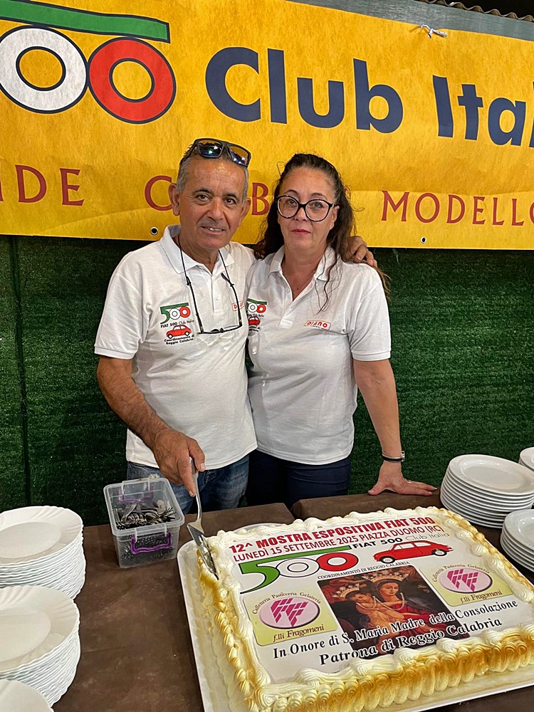 Reggio Calabria, 15 settembre 2025. Si è tenuto in Piazza Duomo il 12° Raduno del Fiat 500 Club Italia Coordinamento di Reggio Calabria in occasione della festa patronale. Più di 80 vetture hanno raggiunto la piazza e si sono mostrate in tutto il loro antico splendore ai curiosi che hanno voluto avvicinarsi. Tantissimi i reggini, ma anche i turisti che per celebrare la Madonna della Consolazione erano in città, e appassionati provenienti dalla provincia e dalla Sicilia: l’amore per i motori ha messo d’accordo entrambe le rive dello Stretto. Un grazie va al sindaco Giuseppe Falcomatà e all’Amministrazione Comunale tutta per aver accolto la nostra manifestazione.