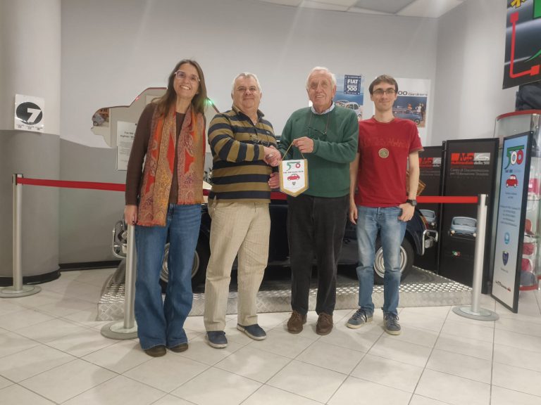 L’Ing. Claudio Gagliolo di Garlenda è venuto in visita al Museo e ha portato un graditissimo regalo, un magnete acquistato durante un viaggio a Lourdes e raffigurante una 500 decorata