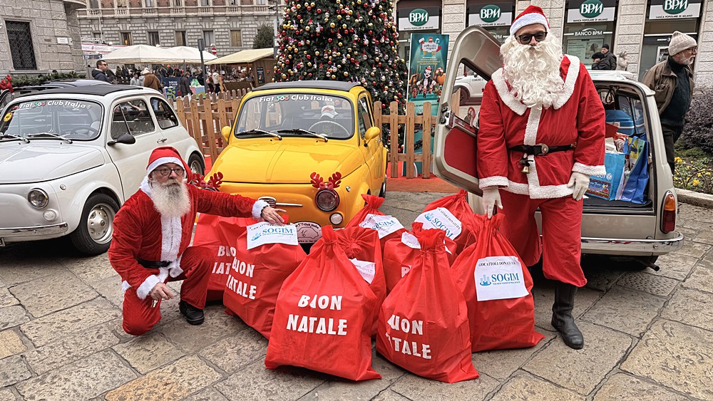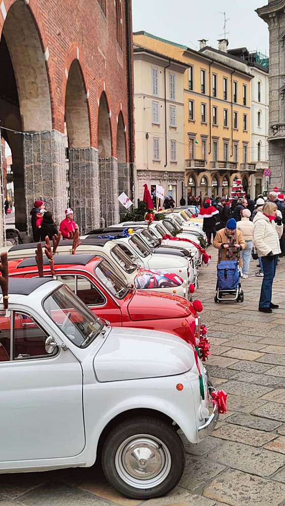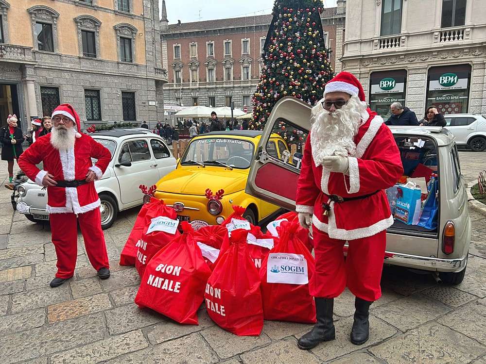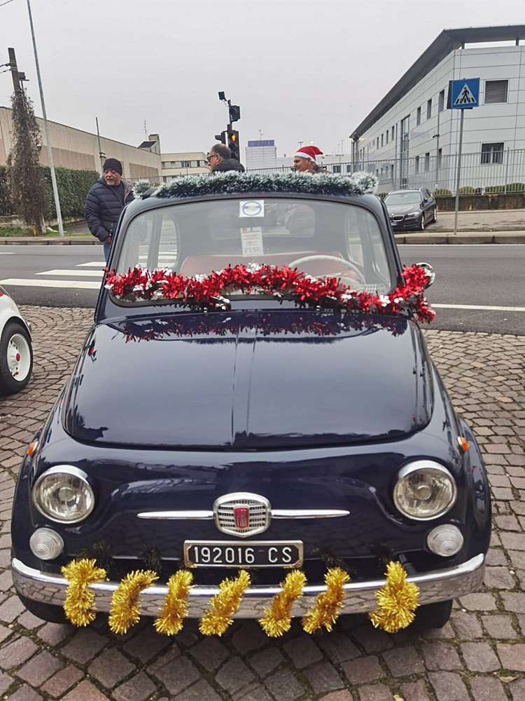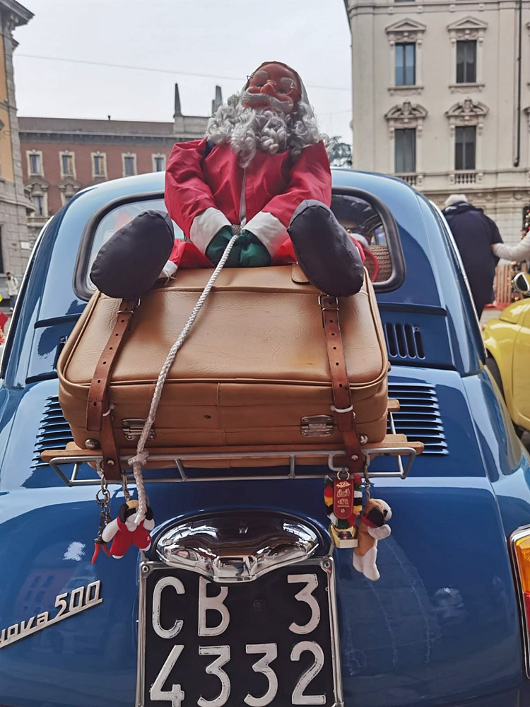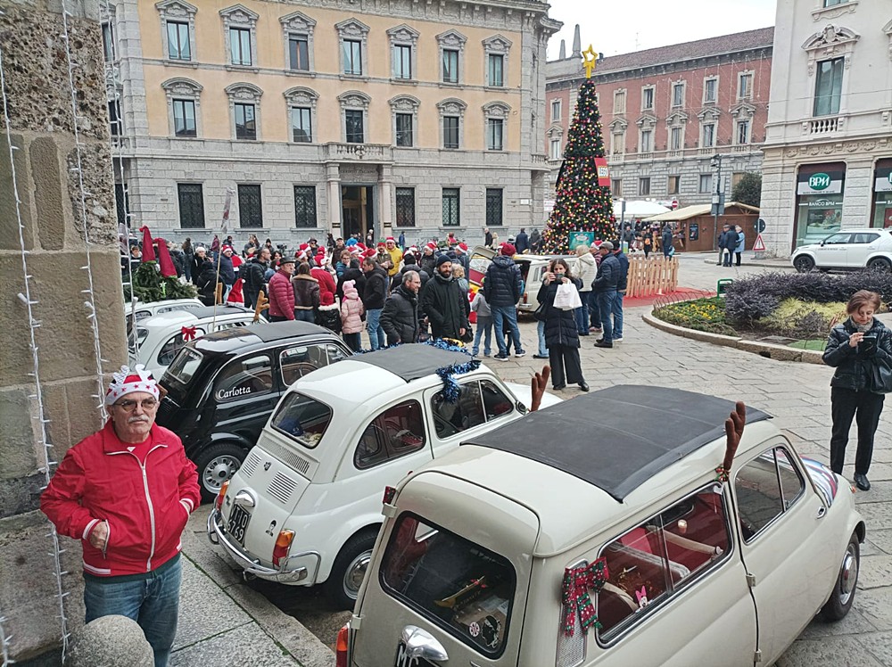 Sono le 9 circa e siamo pronti a ricevere i primi cinquecentisti, mentre un altro gruppo di 15 equipaggi prima di arrivare in piazza si รจ recato al Centro Mamma Rita di Monza dove li attendevano il fiduciario di Monza Antonio Orsini e Suor Antonia; sono stati accolti con un caffรจ mentre i nostri Babbi Natale scaricavano sotto il loro albero alcuni regali, giocattoli, libri e generi alimentari per cercare di dare un piccolo aiuto a questa importante comunitร .