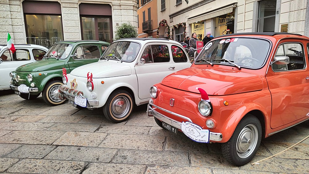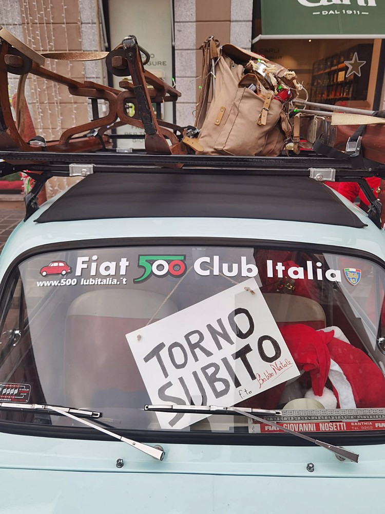 Alle 10,30 tutte le 40 piccole 500 hanno trovato posto sotto lโArengario di Monza ed รจ stato uno spettacolo incredibile per i cittadini che passeggiavano per le vie del centro. Praticamente tutte le nostre macchinine hanno sfoggiato addobbi natalizi degni di una sfilata di alta moda e credo, senza tema di essere smentito, che saranno state scattate decine di migliaia di fotoโฆ la tentazione di portarsi a casa un ricordo era troppo forte!
