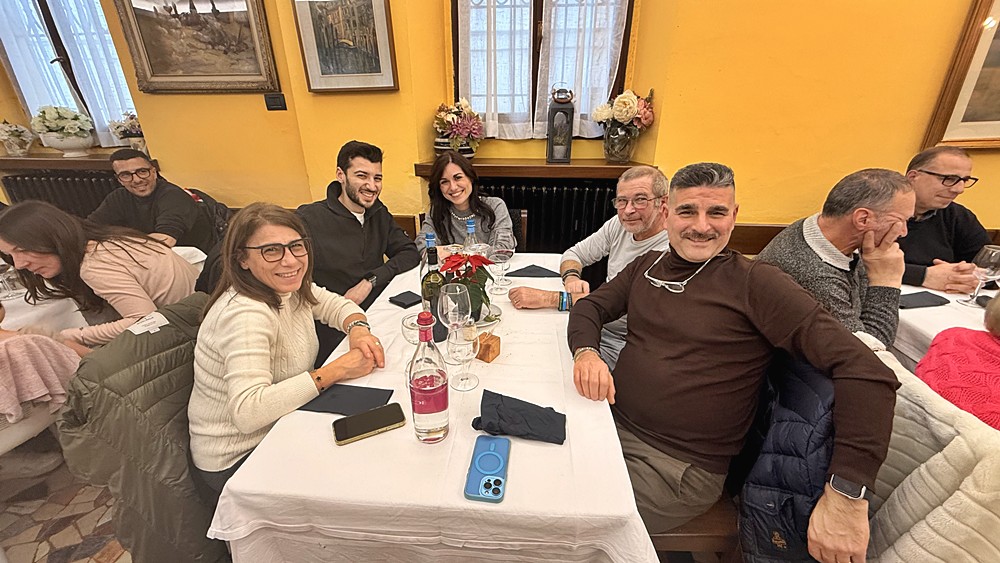 Alle 13 tutti a tavola nel vicino Ristorante โIl Fantelloโ dove abbiamo potuto apprezzare le tipiche specialitร brianzole come risotto con ossobuco o brasato con polenta e uno spettacolare carrello dolci! Durante il conviviale pranzo degli auguri uno dei nostri soci (a dieta) si รจ messo a disposizione per stare accanto e controllare le nostre cinquine: grazie Aldo Porcu!