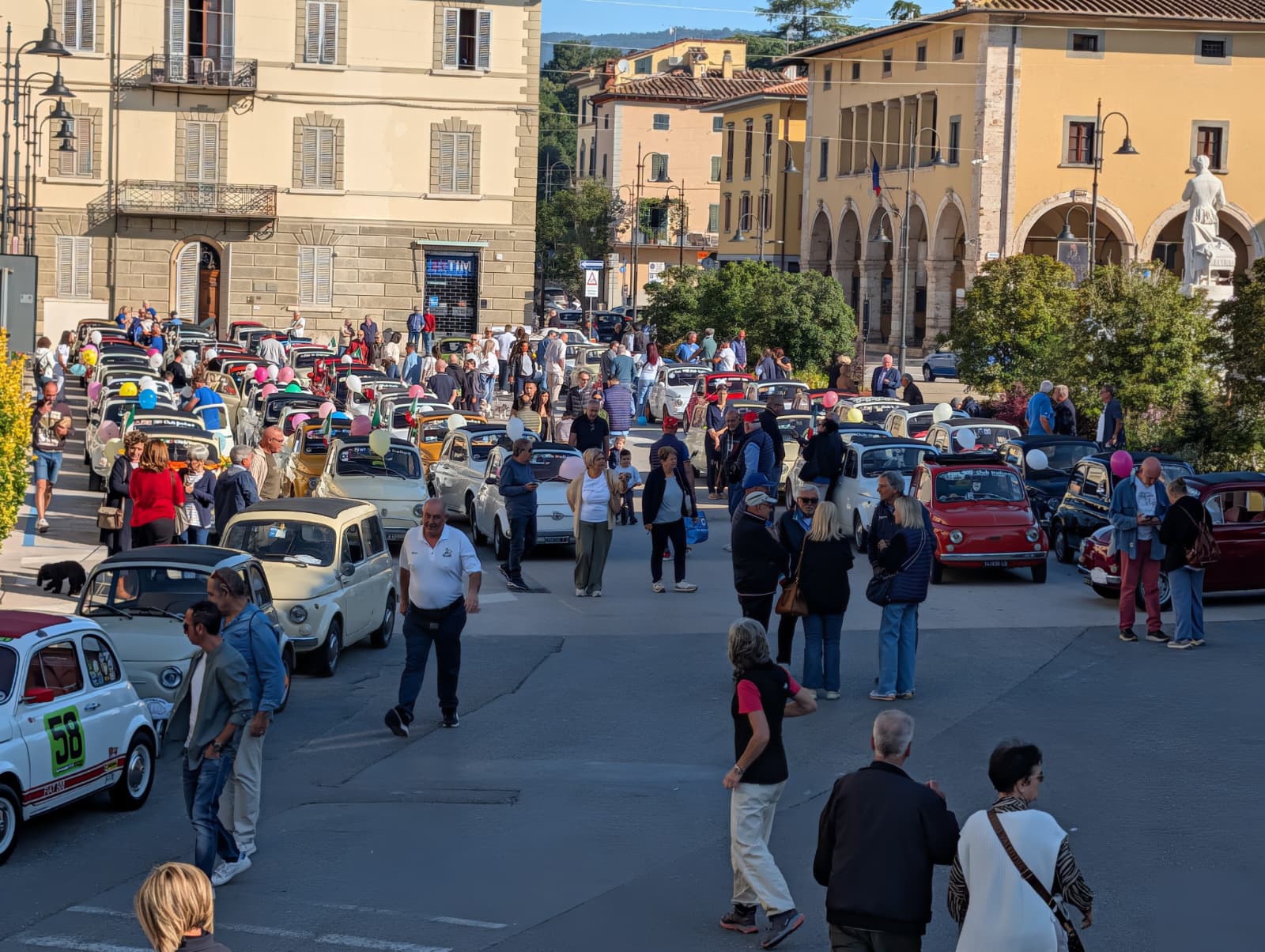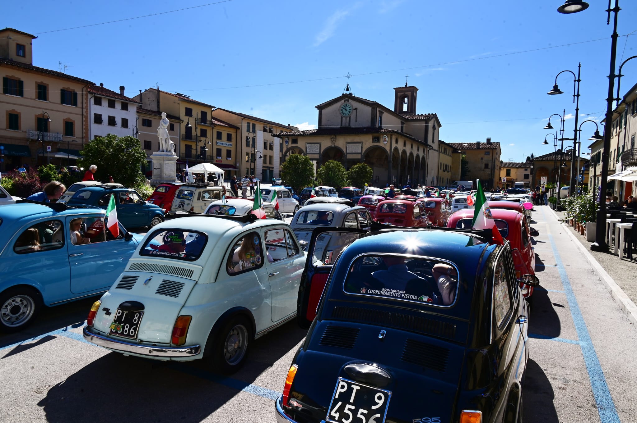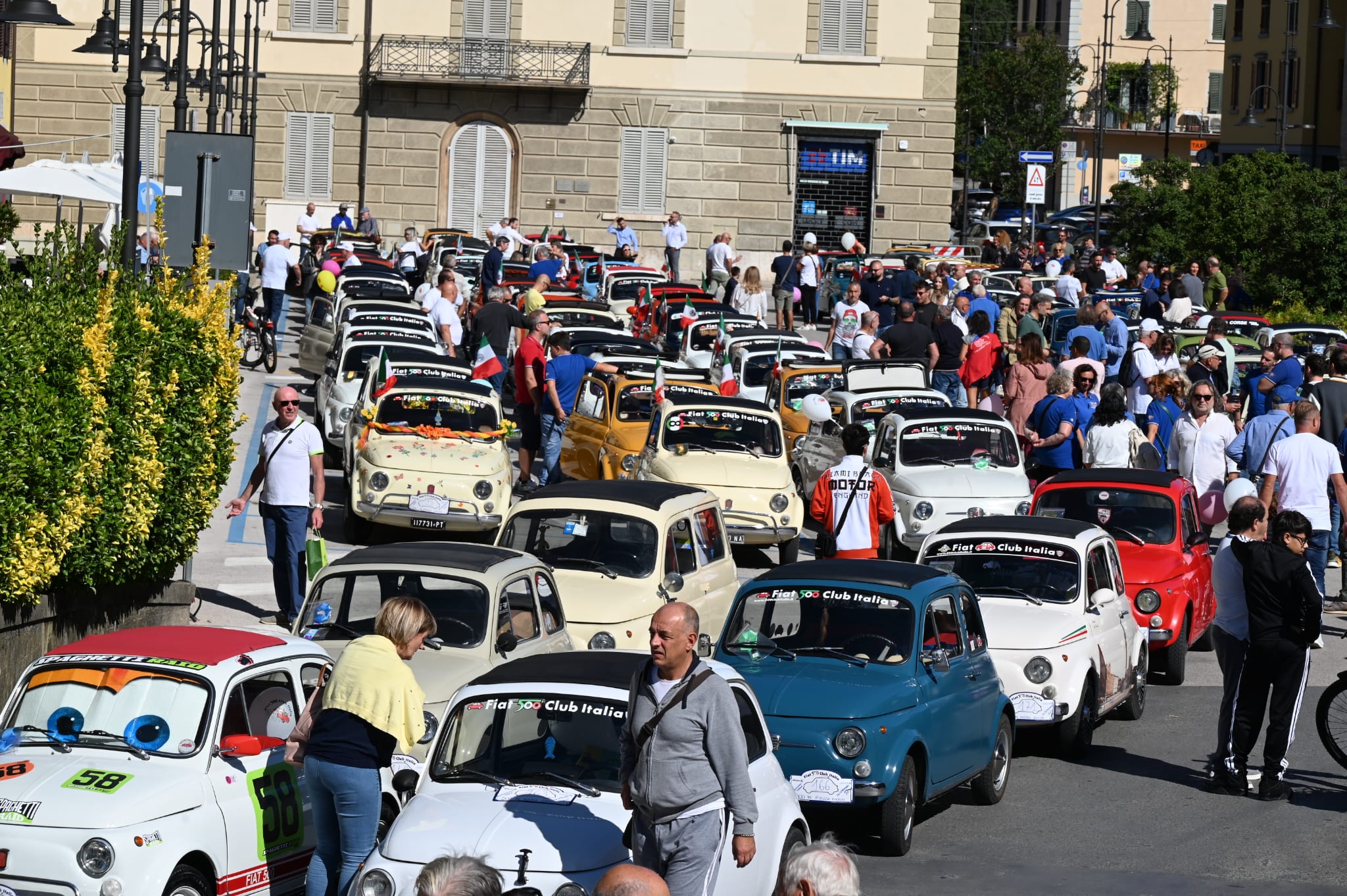 Un tripudio di colori, motori e sorrisi ha animato di prima mattina Piazza Giusti in occasione del tanto atteso raduno di 500 organizzato dal Coordinamento di Pistoia del Fiat 500 Fiat Italia. Un evento che ha unito la passione per l’automobilismo storico, la cultura e un forte spirito di solidarietà e generosità. I 170 partecipanti hanno esibito con orgoglio i loro gioielli su quattro ruote, condividendo aneddoti, curiosità e la passione che li accomuna, trasformando Piazza Giusti in un museo a cielo aperto.