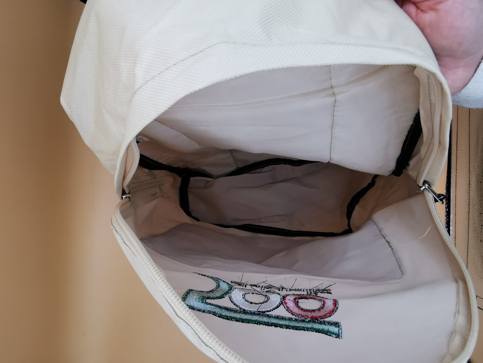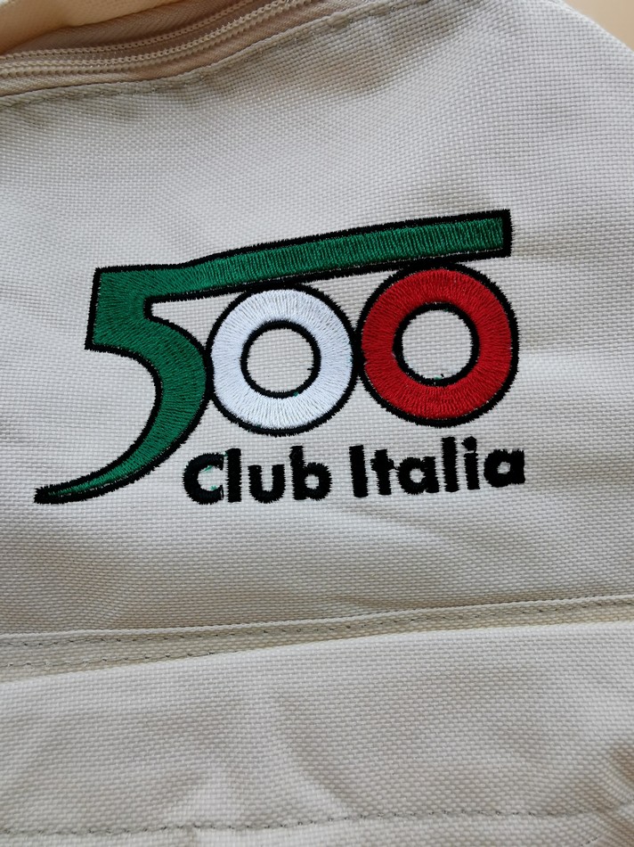 Zaino in poliestere resistente 600D con ricamo 500 Club Italia e chiusura a cerniera anche per la tasca frontale.