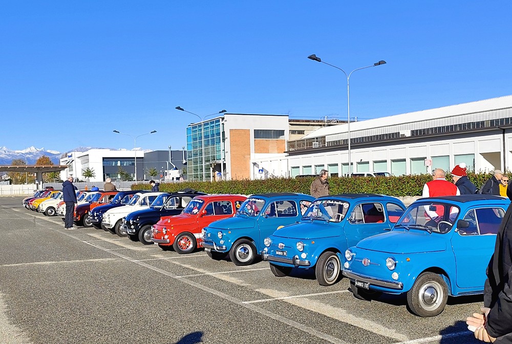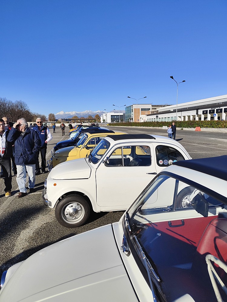 I nostri soci arrivano di buon ora, 70 persone entusiaste, con una grande passione, arrivate con 40 Fiat 500 che naturalmente catturano subito l’attenzione dei passanti. Entriamo nello stabilimento e dopo una breve sosta per raggruppare gli equipaggi, percorriamo i viali dello stabilimento di Mirafiori che ci portano alla collezione. Le belle 500 sono esposte davanti all’ingresso principale e, dopo la foto di gruppo, si parte per la visita. Le guide ci raccontano di meravigliose vicende, tanti aneddoti e storie affascinanti: la macchina dell’Avvocato Agnelli, la Fulvia HF, la Panda spiaggina, Dialogos, Thema, Mefistofele, Vuscia’, la 130 Maremma… ed ancora l’Ardea o la Lambda… insomma, abbiamo solo da lustrarci gli occhi. I soci sono molto curiosi ed affascinati dalle tante auto presenti e piano piano arriviamo verso la mostra delle 500.